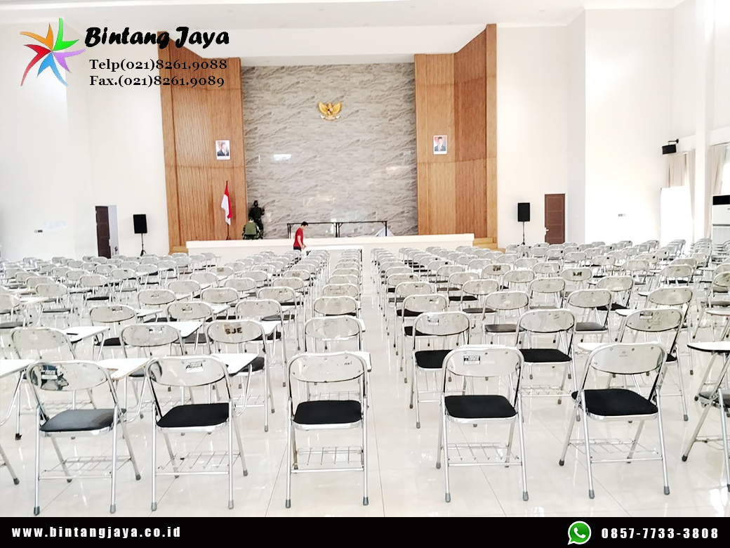 Pusat sewa kursi kuliah di Gambir Jakarta Pusat dengan kerangka stainless antikarat, bersih ,kokoh dan siap disewakan setiap saat. Kursi kuliah atau kursi lipat,kursi belajar merupakan kursi yang cocok untuk acara seminar, test,kuliah, workshop, training dan lain-lain terlebih berhubungan dengan acara tulis menulis yang mebutuhkan meja. Kursi kuliah ini cocok untuk penyelenggaraan seminar di ruangan yang kurang luas, meski begitu kursi ini tetap nyaman digunakan, karena terdapat busa empuk di bagian dudukan dan di sandarannya. Selain itu kursi ini dari bahan stainless yang kuat dapat menampung berat hingga 60 kg.