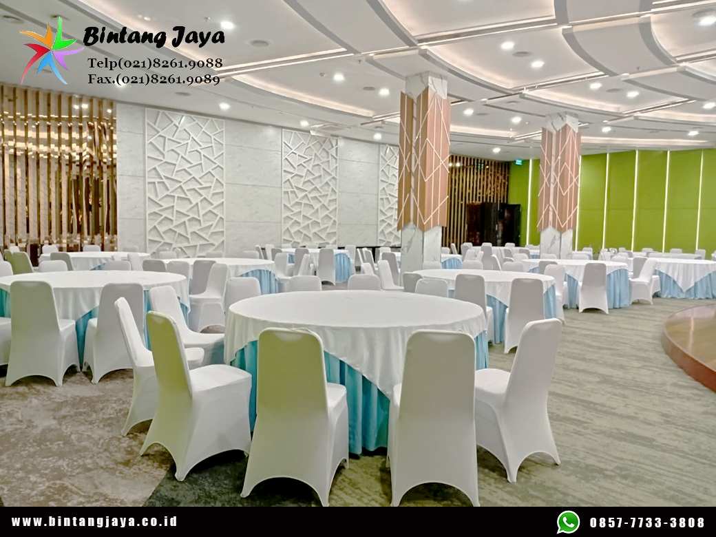 Jika Anda sedang mencari sewa round table taplak tebar putih Kampung Melayu Jakarta, layanan kami dapat menjadi pilihan yang tepat. Kami menyediakan meja bundar dengan taplak tebar putih yang rapi sehingga cocok untuk berbagai acara formal maupun semi formal.
