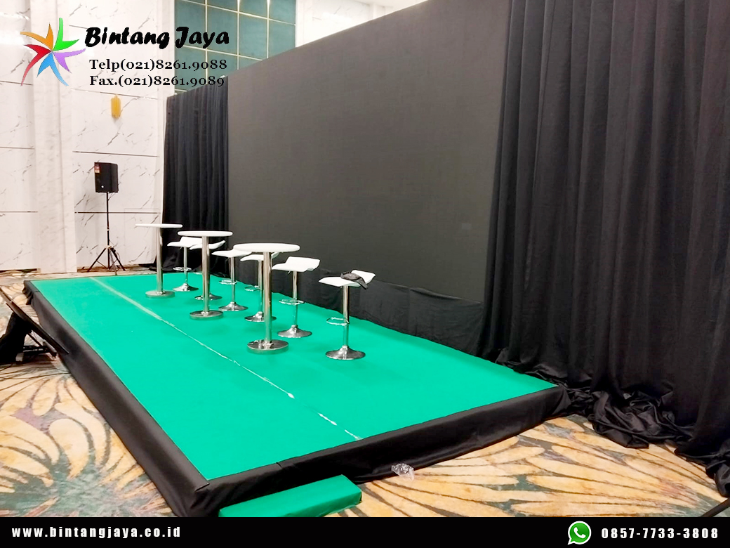 Tidak hanya itu, panggung event menjadi pusat perhatian dalam setiap acara. Oleh karena itu, ukuran dan desain panggung dapat disesuaikan dengan kebutuhan konsep acara.