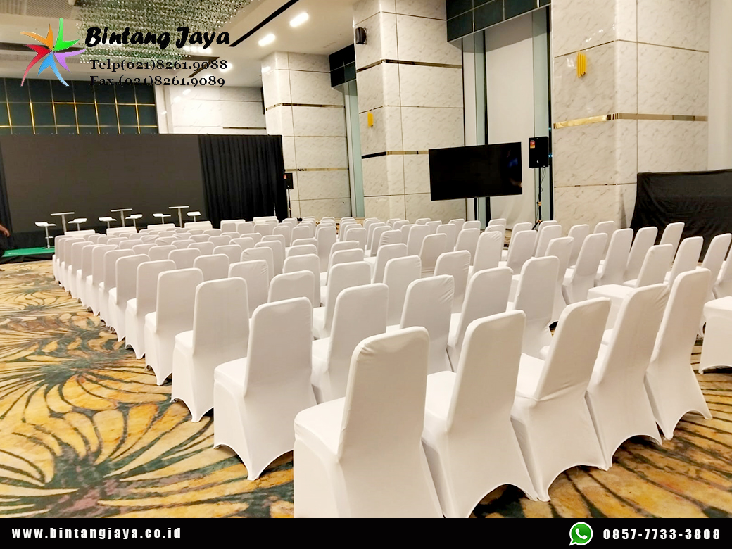 Lebih lanjut, cover hitam ketat memberikan tampilan eksklusif dan seragam. Oleh sebab itu, suasana acara terlihat lebih formal dan elegan.