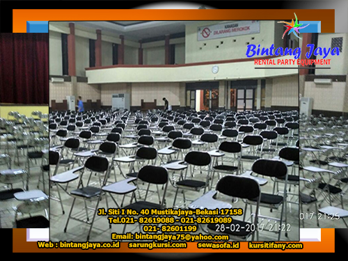 Menyewakan kursi kuliah atau kursi lipat untuk acara test,training,seminar,workshop dll.Kursi kuliah kami dalam kondisi bagus tidak reot papan meja tidak terkelupas, dan kerangka kursi tidak berkarat.Kursi kuliah kami selalu mendapatkan perawatan oleh tim khusus perawatan sehingga kursi siap sewa kapan saja.